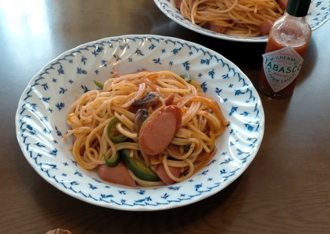朝体重:45.5kgブランチ:スパゲッティナポリタン久しぶりのケチャップ味。具は、ウインナー・玉ねぎ・ピーマン・マッシュルーム。マッシュルームはク···